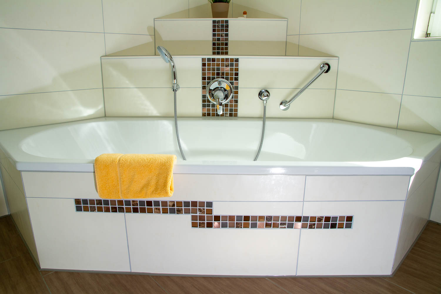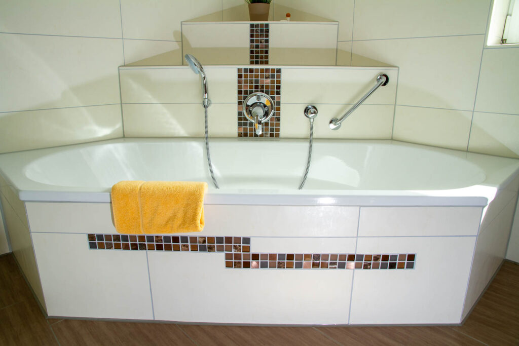 Eine großzügige Dusche sowie eine einladende Eckbadewanne sorgen für entspannte Wohlfühlmomente.