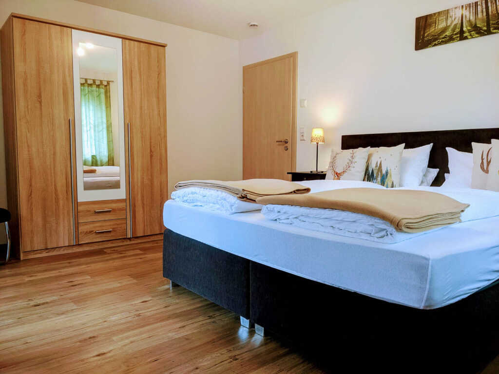 Schlafen wie auf Wolken: In einem der beiden Schlafzimmer wartet ein gemütliches Boxspringbett auf Sie – dazu gibt’s Platz für vier Personen und auf Wunsch sogar ein Extra-Bett für noch mehr Freiraum und Flexibilität.